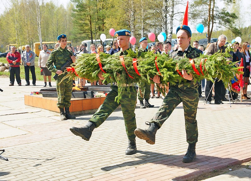 Все они говорили о мужестве, стойкости, священном подвиге народа, желали ветеранам здоровья, благополучия, долгих лет жизни. Из Тверской области в годы войны ушли на фронт 700 тысяч бойцов, из них 17 тысяч были призваны из Конаковского района. У Вечного огня сменялся караул бойцов молодежного центра "Иволга", школьники же читали стихи о войне, посвященные присутствующим на мероприятии ветеранам. Не забыли и о том, что мемориал установлен на месте жестоких боев с немецкими войсками в ноябре-декабре 1941 года, память погибших почтили минутой молчания. Самые маленькие участники митинга — артисты из образцового театра «Теремок» (руководитель Ольга Бардакова) декламировали стихи о войне.