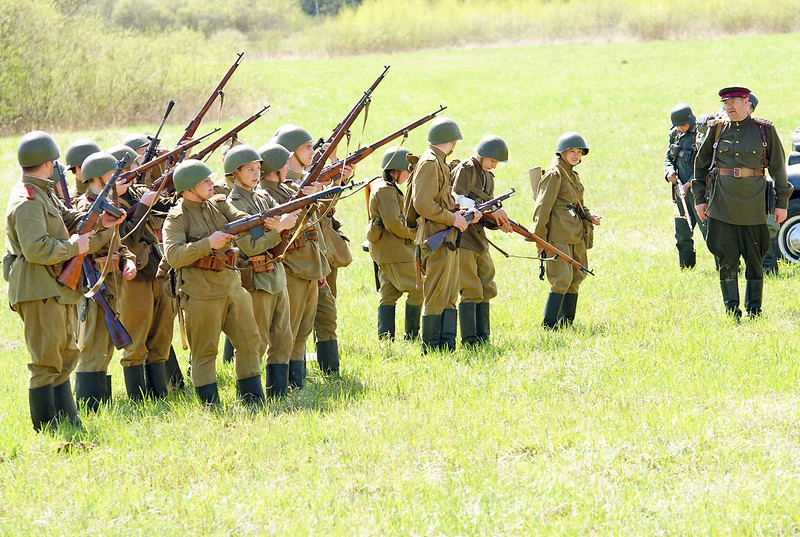 Траурный митинг завершился возложением цветов к мемориалу. После этого воспитанники военно-патриотического центра «Звезда» показали собравшимся собственную реконструкцию боя у деревни Рябинки.