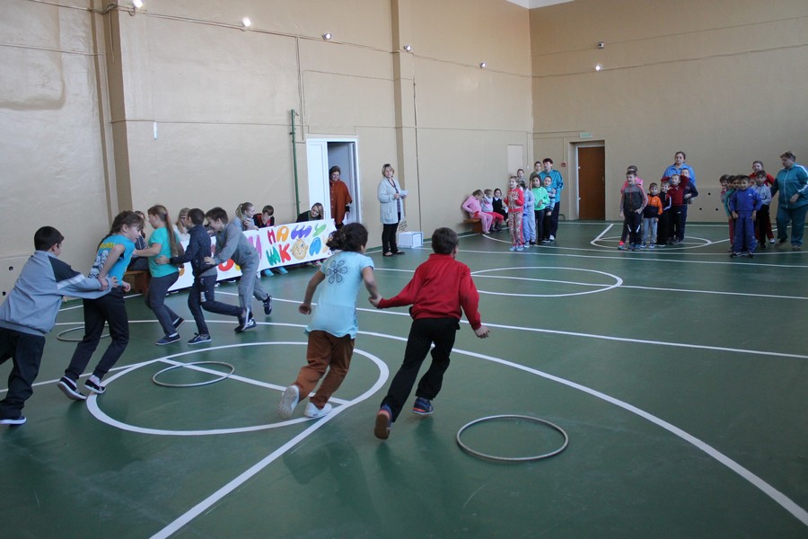Учителя начальных классов Е.В. Земскова, М.В. Минаева, Е.И. Морозова, А.А. Арапова со своими воспитанниками провели спортивную игру «Веселые старты». Три команды: «Светофорчик», «Триколорик», «Ручеек», выполняли различные спортивные задания. Самыми ловкими, быстрыми, сильными стала команда «Светофорчик». Радости не было предела. Собравшиеся дружным троекратным «ура» приветствовали победителей.