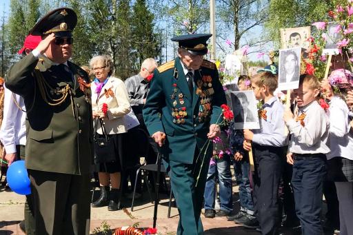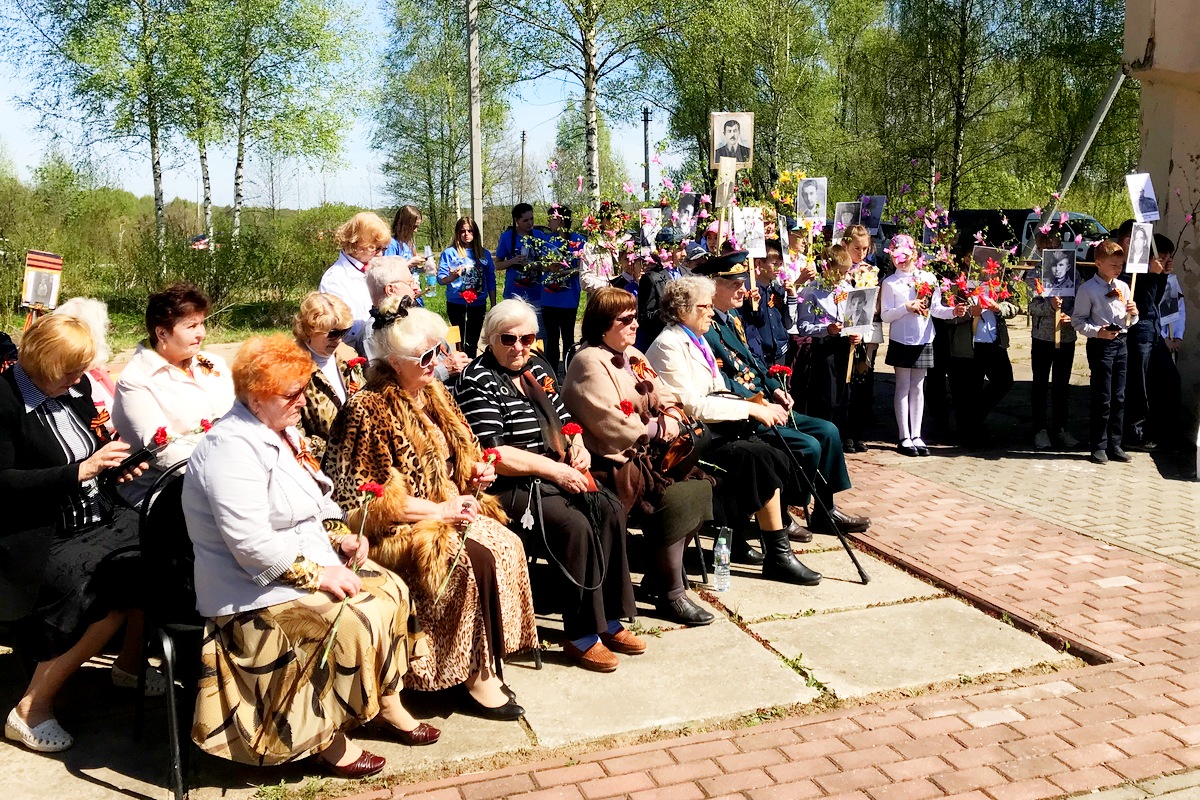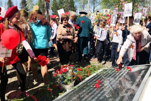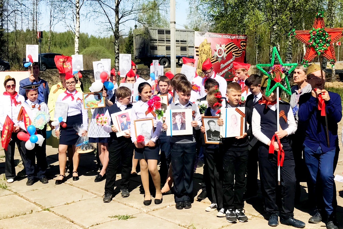 Учащиеся школ района стояли на площади перед монументом с самодельными транспарантами с фотографиями их прадедов и родственников. И в ряду с новым, молодым поколением, стоял «Бессмертный полк», тех, кто подарил нам мирное небо.