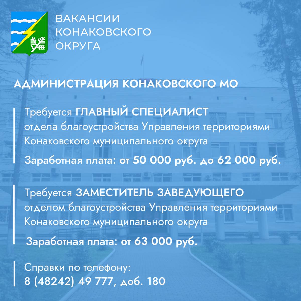 В отдел благоустройства Управления территориями Администрации Конаковского муниципального округа требуются: